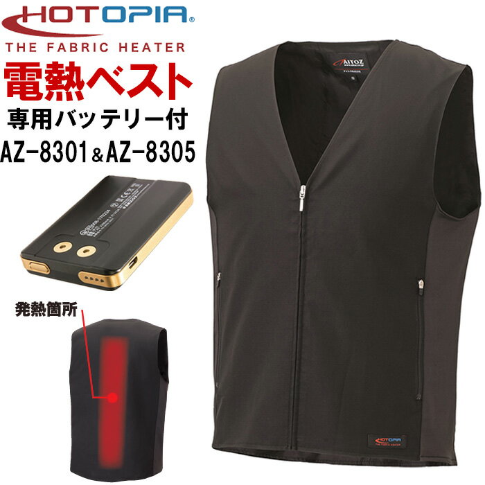 アイトス Vネック電熱 ベスト&専用バッテリーセット 3L AZ-8301 AZ-8305 HOTOPIA ホットピア ヒーターベスト 洗える 秋冬 防寒着 防寒服 作業着 作業服 ユニセックス 暖かい