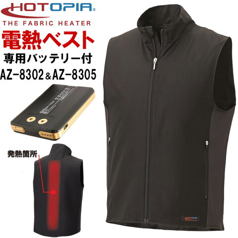 【アイトス】電熱 防寒 ベスト [HOTPIA ベスト (AZ8301) + 専用バッテリー(AZ8305) ] + ネックウォーマー付き 発熱 防寒着 防寒服 作業服 作業着 アウター キャンプ アウトドア 保温 軽量 電熱